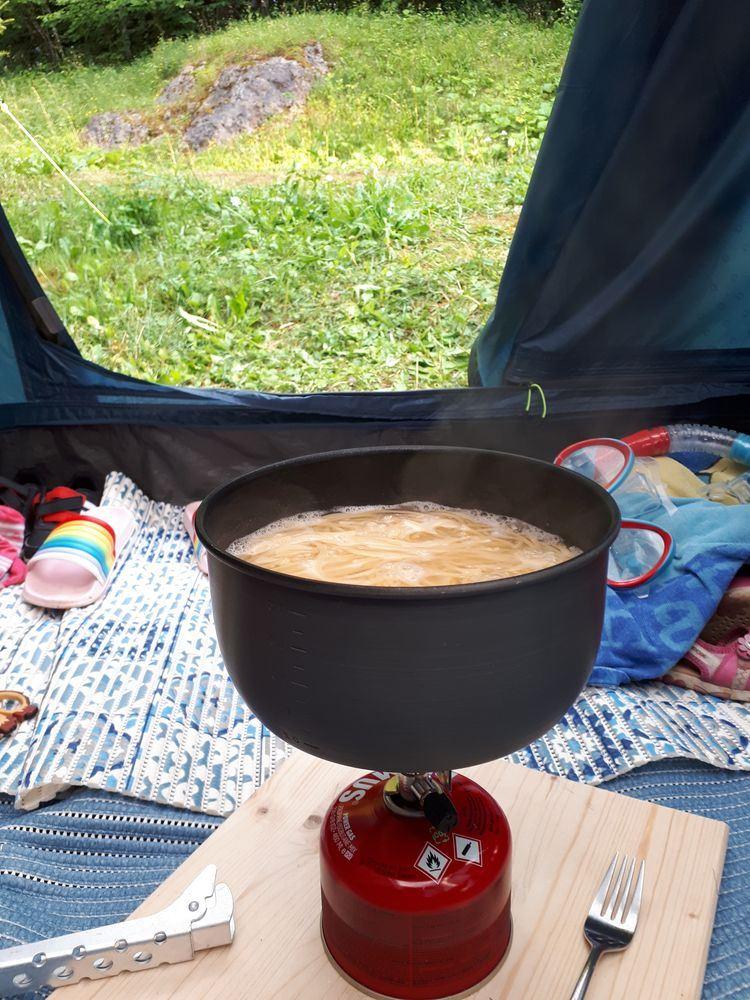 Natürlich benötigst du einen Kochtopf und eventuell eine Pfanne. Hier kann ich das Primus Essential Pot Set empfehlen.