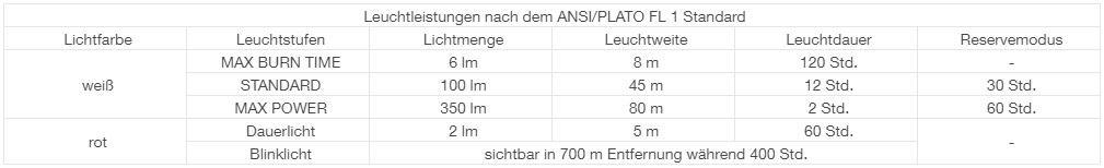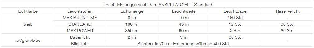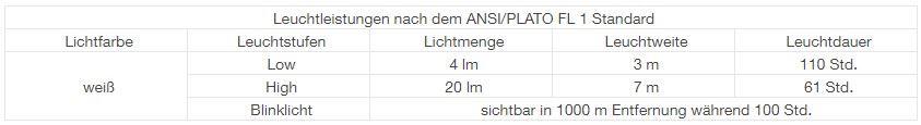 Leuchtkraft: 20 Lumen (ANSI/PLATO FL 1)