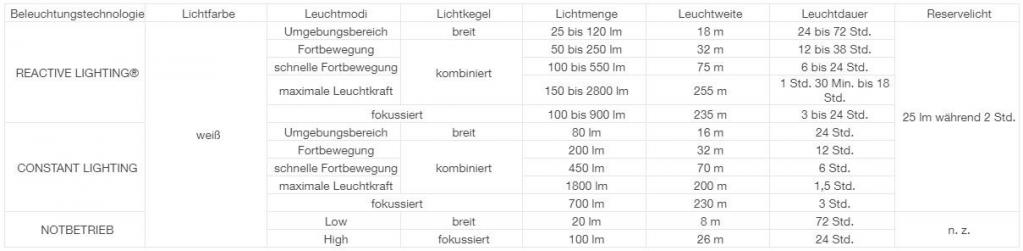 - Garantierte minimale Leuchtdauer von 5 Stunden im REACTIVE LIGHTING®-Modus (Leuchtstufe STANDARD) für lange Touren (Trails, Ultratrails usw.).