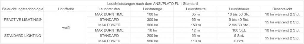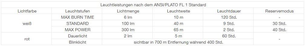 Leuchtkraft: 300 Lumen (ANSI/PLATO FL 1)