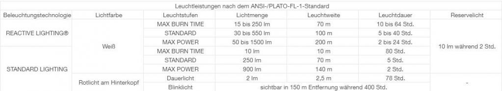 - Drei Weißlicht-Stufen: MAX BURN TIME (maximale Leuchtdauer), STANDARD (optimales Verhältnis Leuchtkraft/Leuchtdauer) und MAX POWER (maximale Leuchtkraft).
