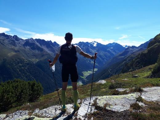 Teleskopstöcke (findest du bei SportScheck). Ich verwende Trailrunning Stöcke von Leki (Amazon)